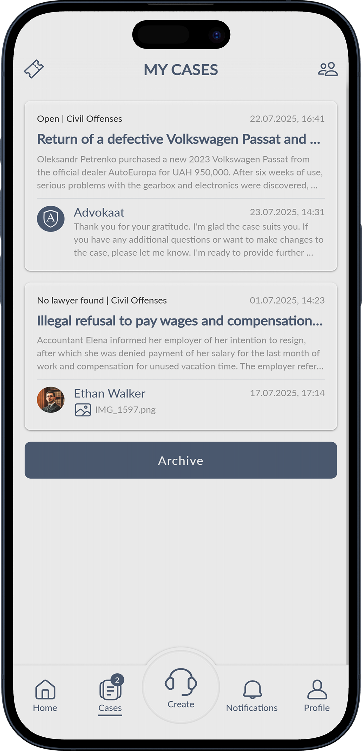 Advokaat is Ukraine's first social network for legal assistance, bringing together ordinary citizens and professional lawyers on a single platform. Our mobile application is designed to make legal services accessible to everyone, regardless of the complexity of the issue or geographical location. Here you can quickly find a qualified lawyer from exactly the field of law you need – from family law to corporate affairs.